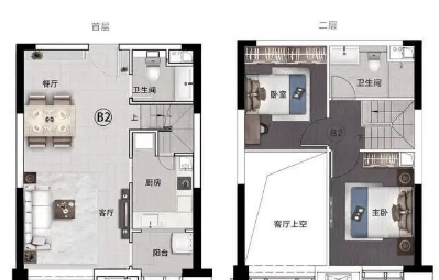 百变loft产品 | 66.99㎡二室二厅二卫:适中的面积,兼具私密性和实用性。