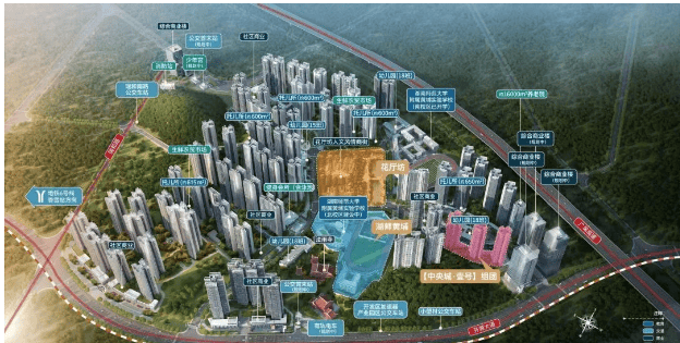 合生中央城计划分六期开发,涵盖住宅、商业、教育设施及仿古建筑等多个功能区,堪称科学城的“巨无霸”。