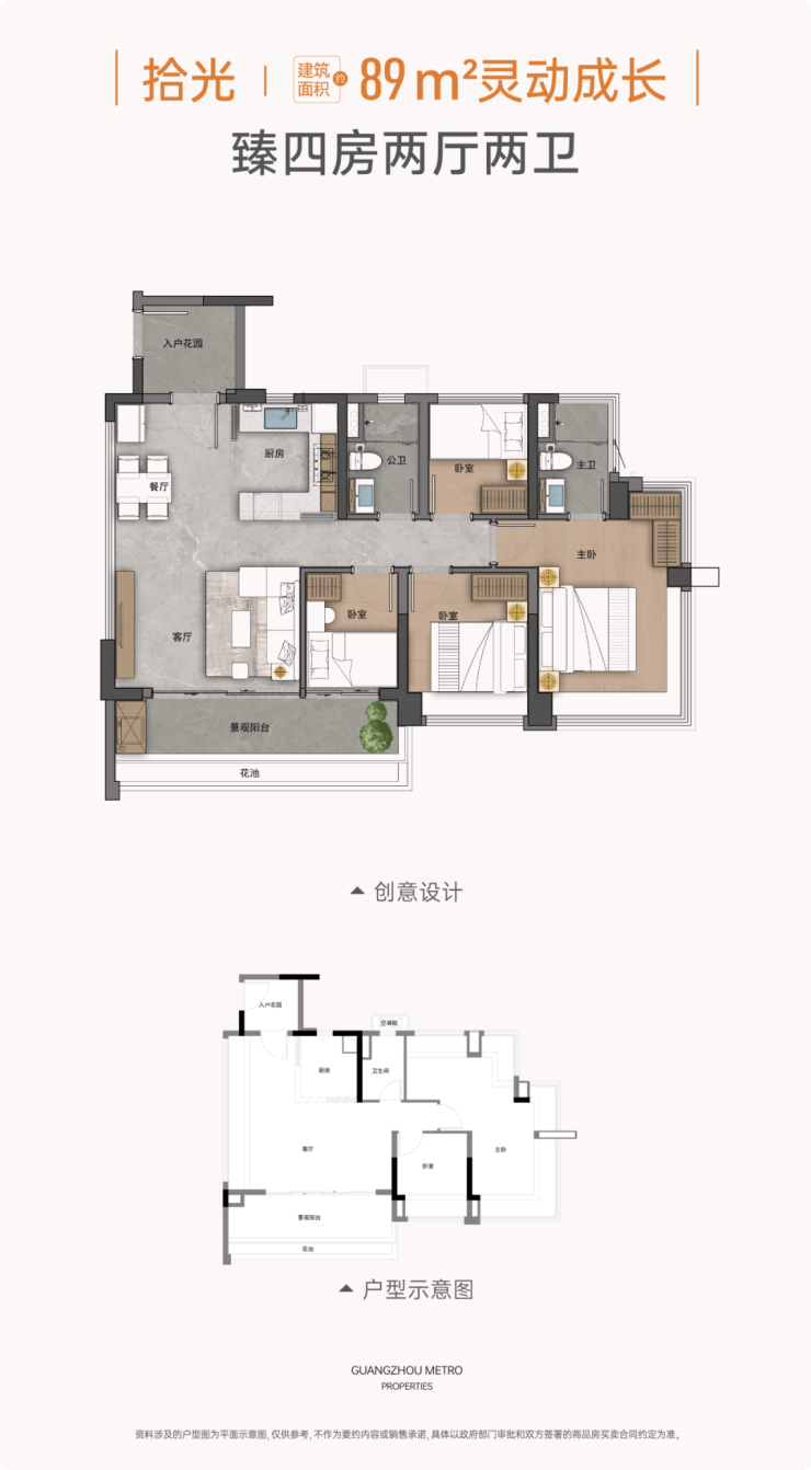 87㎡四房两厅两卫:四房设计,实测客厅面宽4.2米,主卧套房面宽3.6米,配备独立衣帽间与卫生间,适合二胎家庭或三代同堂。