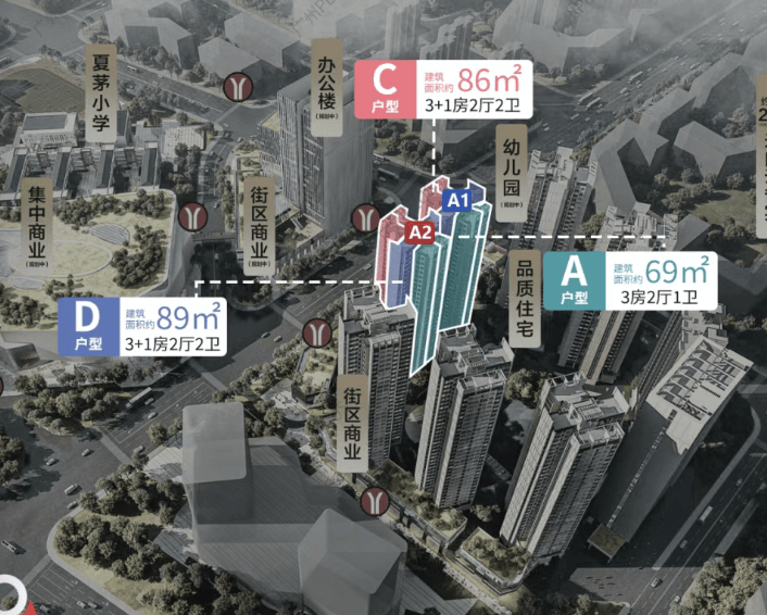 - 夏茅中小学(公办),位于小区正对面,步行即达,但非传统名校;