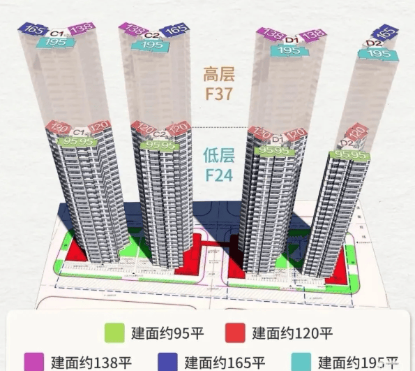 高区(25-37层):两梯三户,聚焦120-160-190㎡改善型产品,私密性与尊崇感更强。