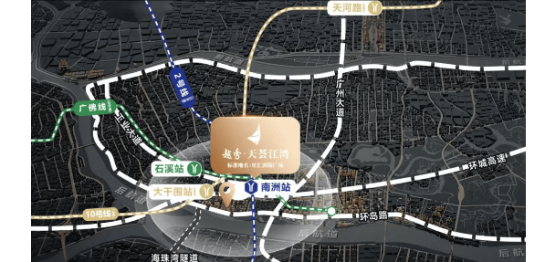 越秀天荟江湾拥有极佳的交通便利性,三大地铁线路环绕——2号线南洲路站、广佛线石溪站以及10号线大干围站(在建中),使得居民能够快速到达广州的核心商圈。此外,项目距内环路入口仅1.3公里,直连广州主城大动脉,无论是驾车还是乘坐公共交通工具,出行都非常方便。这种交通网络的完善,极大地提升了项目的吸引力和居住价值。