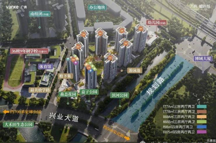 3、商业与休闲资源丰富,楼下有约2万方滨河公园、草地公园,700米处是全国最大的广州足球公园。周边1公里内有新鸿基南站ICC、花城汇·南站等大型商业综合体,15分钟可达长隆万博商圈。