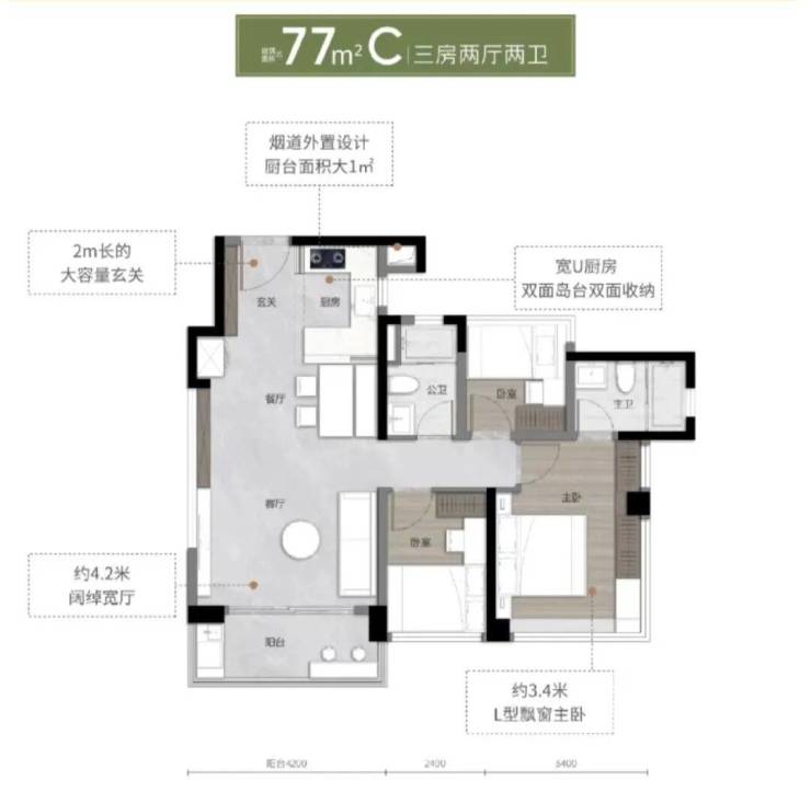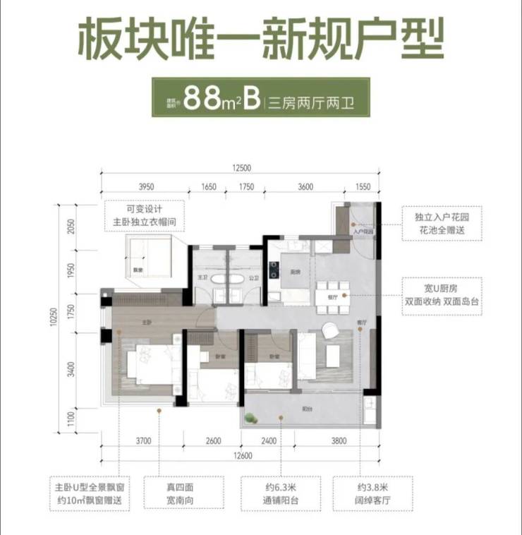 4、户型与产品力突出,作为南站板块唯一新规产品,实用率高达127%-138%,主推77-135㎡三至四房户型,部分户型阳台开间超7米,全屋配备中央空调、方太厨电三件套等,交付标准较高。