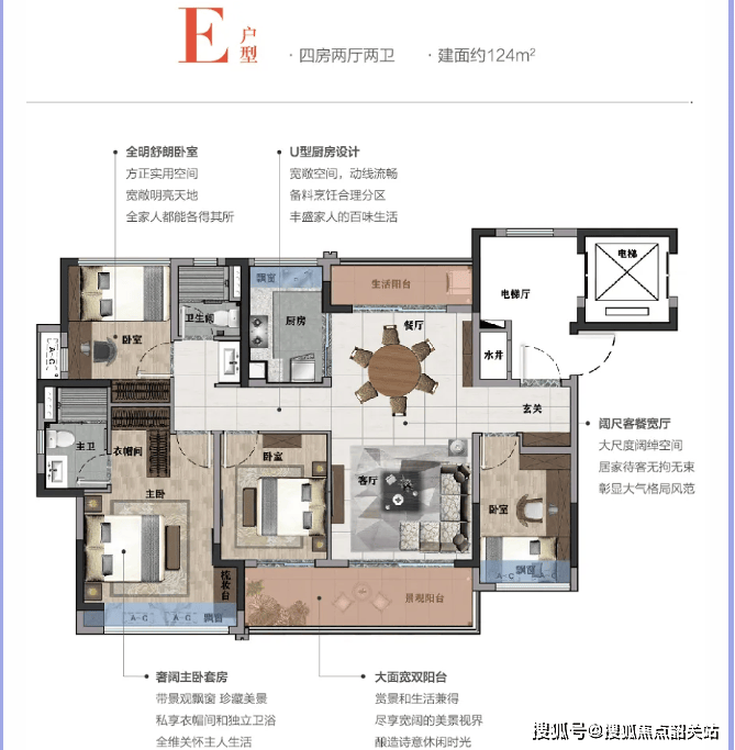 122㎡四房两厅两卫:适合大家庭居住,宽敞明亮,功能分区合理,是改善型住房的理想选择。