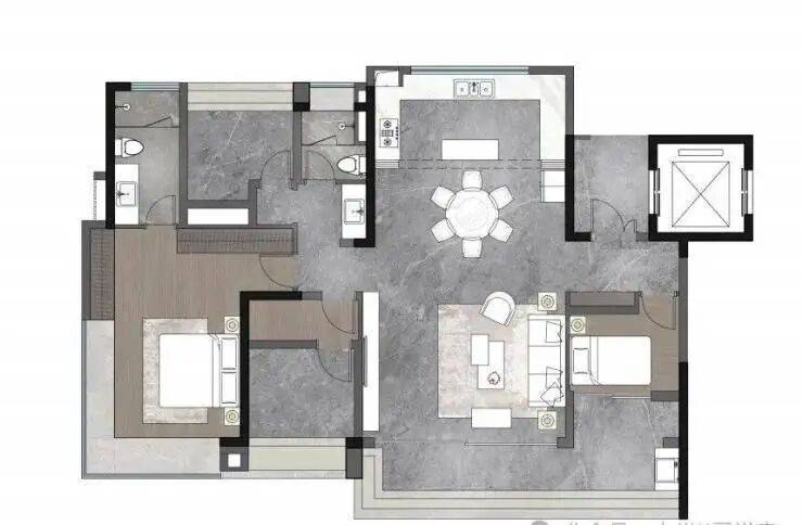 中西双厨的配置,是这个户型的另一大亮点。U型中厨,满足了日常煎炒烹炸的需求,封闭式的設計有效隔绝了油烟。岛式西厨,则适合制作下午茶、烘焙甜点或举办家庭派对,开放式的設計增加了家人之间的互动交流。这种双厨设计,既兼顾了实用性,又提升了生活的仪式感。