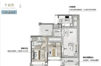 约90㎡户型:三开间朝南设计,主卧套房,采光通风良好。