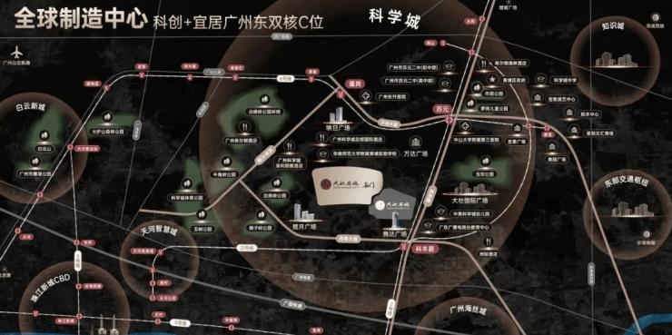 生活配套方面,大壮名城·名门同样表现优异。整个项目总面积达400万平方米,其中商业配套占比高达200万平方米。周边已有萝岗万达广场、科学城商业广场、至泰广场等多个大型商业设施,且大壮映日广场也已封顶并申请布局微调。未来还将建成超五星级购物中心,成为黄埔商业新地标。此外,项目周边还有揽月广场、荔枝公园、萝岗儿童公园等多个休闲场所,以及中山附属第三医院岭南医院等医疗资源。