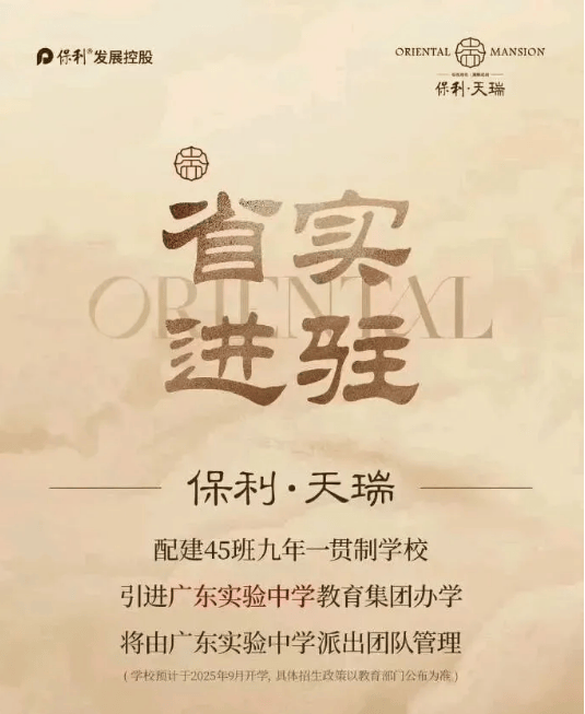 教育资源是保利天瑞项目的核心优势之一,项目配建45班公办九年一贯制学校,现已官宣引进广东实验中学教育集团办学,并由广东实验中学派出专业团队进行管理。这是天河楼盘配建公办学校首次引进省市属品牌办学,对天河教育发展具有重要意义,也为项目业主子女提供了优质的教育资源。 广东实验中学作为广东省重点中学,拥有雄厚的师资力量、完善的课程体系和优良的办学口碑,其教育集团管理的学校在教学质量、育人理念等方面均处于行业领先水平。该学校预计2025年9月开学,具体招生政策以当年教育部门公布为准。 从距离来看,学校与项目无缝衔接,业主子女步行即可到达,无需长途奔波,不仅节省上下学时间,也提升了出行安全性。此外,九年一贯制学校具有显著优势,能为儿童青少年提供连续性的学习环境,系统设计义务教育课程体系,营造稳定的成长氛围;同时,按照天河目前招生惯例,小升初以直升为主,九年一贯制学校可有效减轻择校压力,降低教育焦虑,让孩子在优质教育环境中稳步成长。