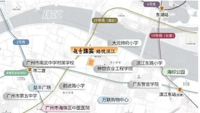A:项目交通十分便利。自驾可通过江湾桥、海印桥快速直达越秀、天河核心区。地铁方面,毗邻2号线市二宫站,在建的10号线滨江东站也在项目东侧,未来双地铁加持,出行无忧。