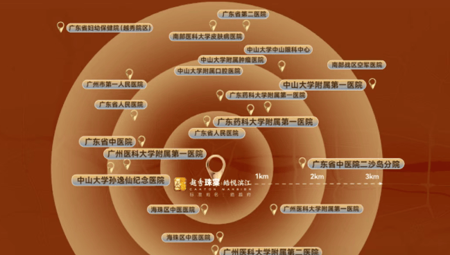 在医疗配套方面,皓悦滨江同样拥有无可比拟的优势。项目周边三甲医院云集,形成了强大的医疗矩阵。广医一院、广医二院、孙逸仙纪念医院、广州市红十字会医院等顶级医疗机构均在3公里范围内,部分医院甚至就在“五分钟生命线”内。这意味着,一旦家人遇到突发健康状况,能够在第一时间得到最专业的救治。