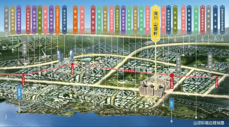 项目打造 5 分钟成熟生活圈,各类配套设施完善,全方位满足业主日常生活需求。商业配套方面,大润发、新塘广场、汇合中央广场三大商圈环绕,周边林立多家大型成熟商业体,购物、餐饮、娱乐等消费需求一站式解决。医疗资源充足,2 公里范围内汇聚水电医院、新塘医院,以及南方医院附属医院这一首家三甲知名医院,为业主健康提供全方位保障。生态休闲方面,四望岗公园、新塘公园环伺,1500 米沿江绿道贯穿其间,依托东江 40 公里活力水岸规划,为业主提供亲水宜人的休闲空间,实现繁华与自然的和谐共生。