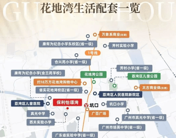 项目周边有多个大型购物中心,如万科理想花地商业、芳和荟购物广场和荔胜广百等,满足日常生活需求。此外,距离广医附属第一医院花地湾院区仅约700米,为居民健康保驾护航。