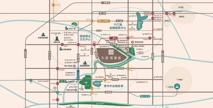 东建明德城位于朝安路与同济东路交汇处,向东1公里直达千灯湖,向西2公里直达祖庙商圈,向北3公里直达佛山新城。这种“三角核心”的区位,使其成为广佛双城通勤族的优选: