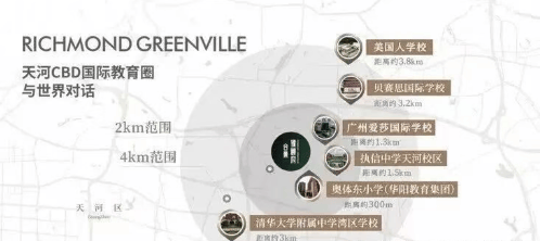 优质中小学:小学有奥体东小学(华阳教育集团旗下校区),中学有执信中学天河校区、清华大学附属中学湾区学校等,此外还有多所国际学校如广州梅沙学院、爱莎外籍人员子女学校等。