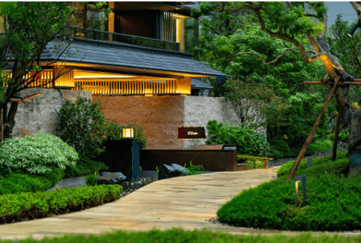 立体园林设计:小区园林采用“四谷三庭”的空间布局,营造出山水庭院的禅意氛围,搭配樱花树等各种花期不同的树木,四季皆有不同的风景。
