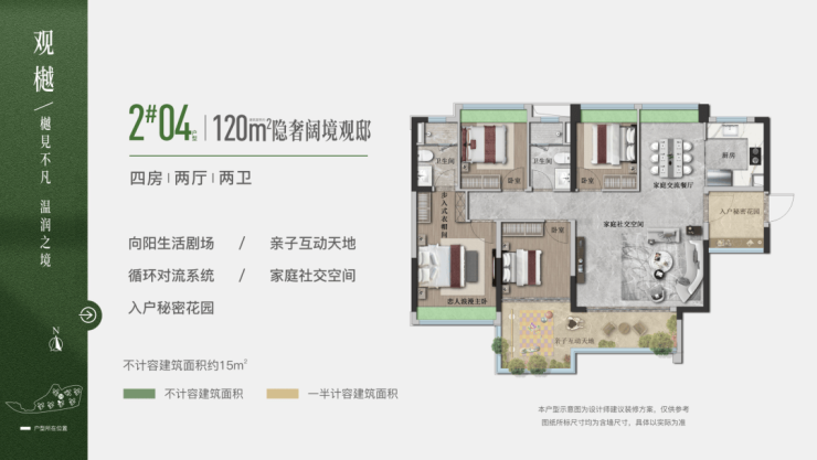 120㎡四房:这是改善型的首选。做到了四开间朝南,采光面极大。有的户型还带独立的入户花园,私密性极强。横厅设计让客厅和餐厅连成一个大空间,视野开阔,非常适合家庭聚会。