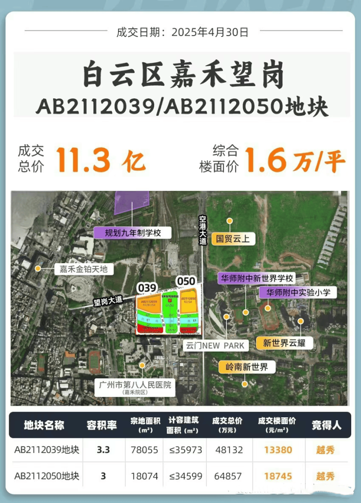 在本次嘉禾望岗地块的竞拍中,越秀地产凭借敏锐的市场洞察力和雄厚的资金实力,经过13轮激烈竞价,最终以4.81亿元成功拿下AB2112039地块和050地块,溢价率16%。这一举动,不仅彰显了越秀地产对嘉禾望岗片区未来发展的高度信心,也为该区域的楼市注入了一剂强心针。在土地市场容错率为零的当下,央企、国企的入场,无疑给购房者吃下了“定心丸”。
