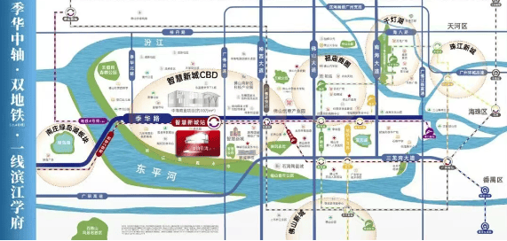 项目选址于佛山禅城CBD核心——季华路黄金商务带,这里是佛山“十四五”规划重点发展的中部创新走廊,未来将集聚科创产业与数字经济企业。季华路全长约20公里,沿线汇聚大量高端写字楼与金融机构,高端人才密集,居住氛围成熟。项目紧邻东平河,坐拥“1河2岸5公园”的生态资源,东平水轴线作为大湾区碧道试点,正打造25公里滨水文化长廊,未来将形成集休闲、文化、生态于一体的滨江生活圈。这一区位优势,既享城市繁华,又拥自然静谧,是不可复制的稀缺资源。