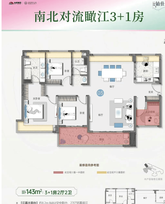 户型设计是居住体验的核心。项目三期主力户型涵盖96平方米三房、113平方米3+1房及143平方米瞰江大四房,均采用南向布局,强调通透性与功能性。96平方米户型做到三房两厅两卫,主卧带飘窗,客厅连通阳台,空间利用率高;113平方米户型创新设置灵活空间,可改造为书房或儿童房;143平方米头排江景单位,南北对流,巨幕观江视野,适合改善型家庭。所有户型均经过多轮优化,确保动线合理、动静分区,满足不同家庭结构的需求。