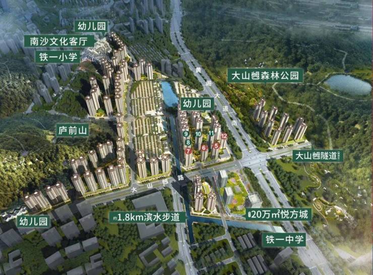 项目周边双山环绕,西面紧靠庐前山,东面步行5分钟到达大山乸森林公园,国家4A级旅游景点,南沙森林绿肺。