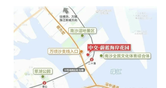 项目地处南沙未来城市门户——二十涌枢纽核心区,交通能级极高。步行约500米即达在建的18号线南延线(南中城际)二十涌站,该线路设计时速160公里/小时,西线预计2027年通达中山,东线2030年直抵珠海拱北;同时深南中城际亦将在站南侧设站,未来形成三线交汇的湾区轨道枢纽。自驾方面,距已通车的深中通道南沙线收费站仅约1公里,30分钟直达深圳前海。依托这一立体交通网络,项目将实现“半小时畅达广深中珠”的大湾区通勤圈,区位价值远超当前界面,具备强劲的长期发展潜力。