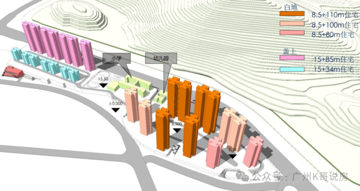 项目分一二两期开发,其中一期将建住宅+1所幼儿园,二期计划建住宅+1所小学。