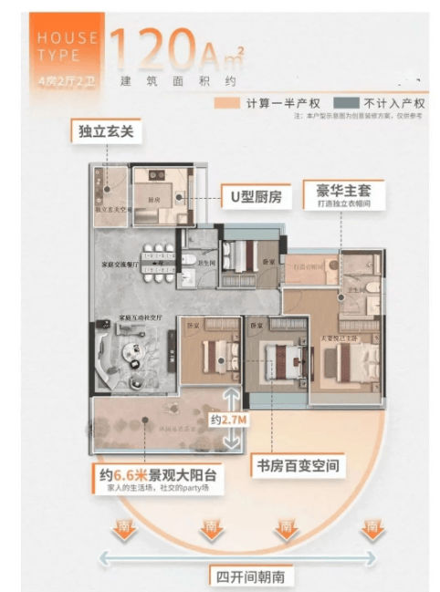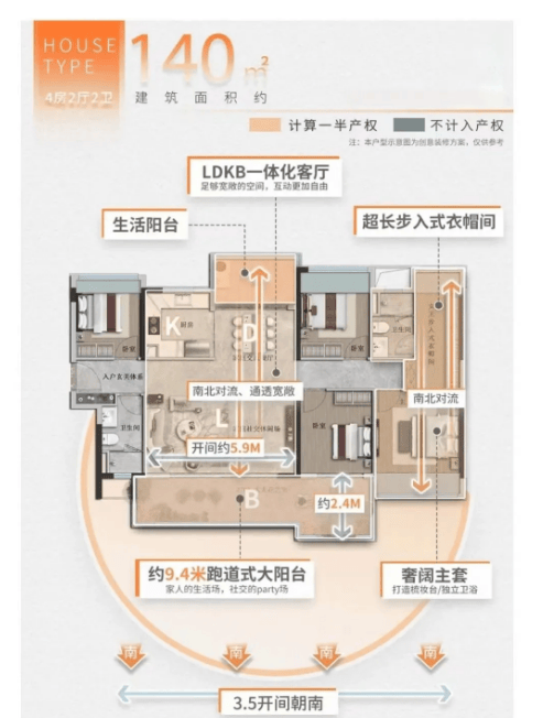 🖼️ 堪称 IMAX 级观景户型,客厅与主人房空间超越市面上部分 170㎡户型,南北对流设计保证通透宽敞。约 9.4 米跑道式大阳台,可满足家庭烧烤、聚餐、棋牌等多元需求,无需外出即可享受休闲时光。