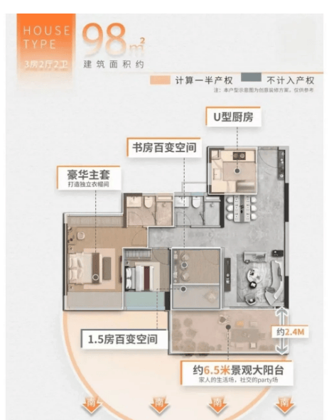 🌉 配备约 6.5 米长、2.4 米进深的景观大阳台,兼具观景与实用功能,可打造为休闲区、绿植区或晾晒区,一物多用提升空间价值。