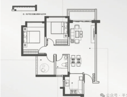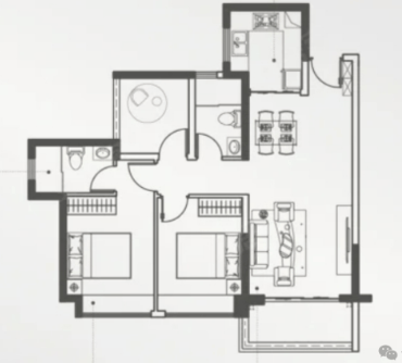 这款户型格局与80㎡户型相近,但核心优势在于南向朝向。南向户型通风和采光更佳,居住舒适度大幅提升。更重要的是,它配备了双卫生间设计,避免了家庭日常使用拥挤的问题,尤其适合有老人的三口之家或二胎家庭。双卫设计不仅提升了生活的便利性,也增强了居住的私密性。这款户型在保持紧凑实用的同时,兼顾了舒适度和功能性,是刚需家庭升级换代的优选。