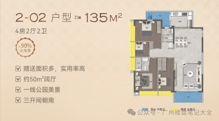 越禧府精准洞察高端改善群体需求,主打71-135㎡二至四房花园豪宅,户型涵盖刚需改善与高端改善全维度,参考售价71㎡两房约550万、83㎡两房约695万、108㎡三房约990万、135㎡四房约1288万,适配不同家庭结构的居住需求。户型设计兼具实用性与舒适度,格局方正、视野开阔,空间利用率高,部分户型实现四开间南向、超宽楼距,采光通风俱佳;135㎡南向改善四房拥有超宽楼距,视野无遮挡;83㎡户型可实现瞰白云山景观,稀缺性突出;71㎡稀缺温馨两房望中央园林,低总价即可入手城芯学区房。需客观说明的是,项目虽户型设计贴合改善需求,但受容积率偏高、楼栋密度较大的影响,部分户型私密性受到一定影响,且相较于新规纯住宅产品,得房率未达到最优标准,但整体空间规划合理,最大化弥补了密度带来的不足。