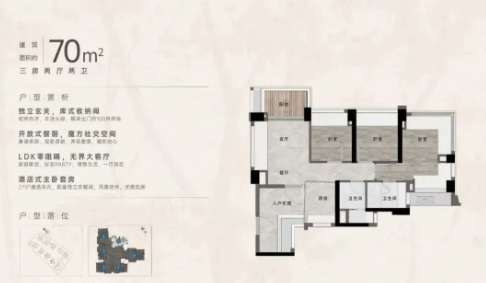 超新规设计,实测使用率 118%,使用面积达 88.5㎡,比同面积普通户型多 13.5㎡;