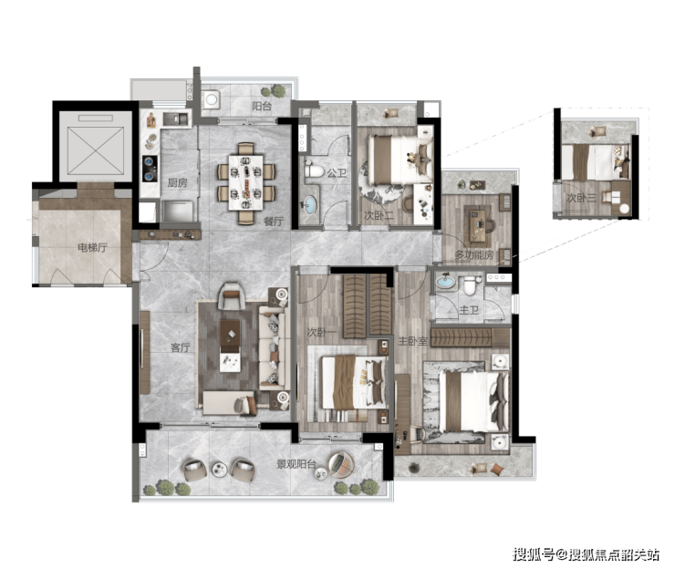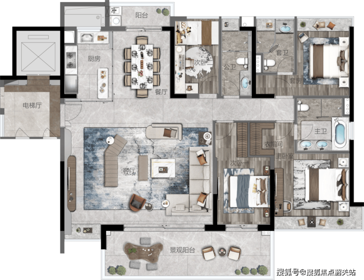 2.1 户型设计:270°环景视野,空间利用率超90%