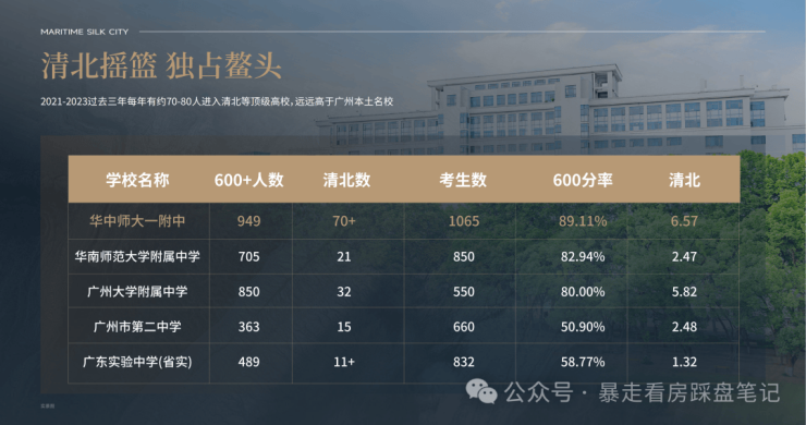 1、引入华中师大教育集团办学,学校连续六年排名全国第一,清北摇篮 (广州第一的华师附仅排名第十五),近100%一本升学率