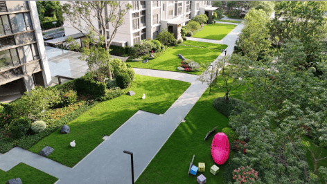 社区内部园林由广东凯天骏景观艺术有限公司匠心打造,以自然、质朴、包容的开放姿态,连接都市、自然与社区。园林规划遵循「虽由人作,宛自天开」的造园理念,复刻东方诗意美学,打造三进门仪归家礼序。高耸的乔木撑起绿意穹顶,阳光透过叶隙洒落,营造出光影交错的自然意境;照花回廊、平湖秋月、枕月桥等景观节点,移步异景,尽显江南大美。每一处景观细节都经过精心打磨,将东方传统园居情怀与现代生活需求完美结合。项目绿化率高达30%,社区与湖山融为一体,在城市核心区域打造了静谧康养的居住氛围,有效隔绝城市喧嚣与粉尘污染,让业主每日与自然相伴,享受健康、雅致、舒适的居住生活。其园林工程在交付评估中荣膺集团第一,正是对其生态品质的最高肯定。