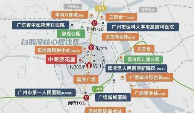 商业配套:临近多个大型商业综合体,如双太古商业(太古里+太古汇)、白鹅潭万象城以及广州健康港星河COCO Park,丰富了居民的生活娱乐选择。