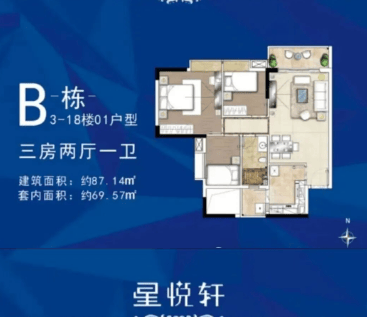 2、87㎡三房户型 刚需改善兼顾 温馨宜居