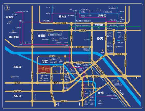 项目交通的核心优势是 “多维覆盖、快达广佛”,构建起 “30 分钟广佛生活圈”:轨道交通方面,紧邻在建的佛山地铁 3 号线伦教站,2 站可达北滘新城(对接美的、碧桂园总部),3 站达大良主城区,未来可无缝接驳广州地铁 7 号线西延线,7 站直达广州南站,彻底打通广佛跨城通勤通道;计划动工的佛山地铁 11 号线途经伦教,未来可接驳大良城区与广州广钢新城,进一步拓展通勤范围;广珠轻轨顺德站距项目不远,15 分钟可达广州南站,1 小时覆盖珠海、中山等湾区城市。