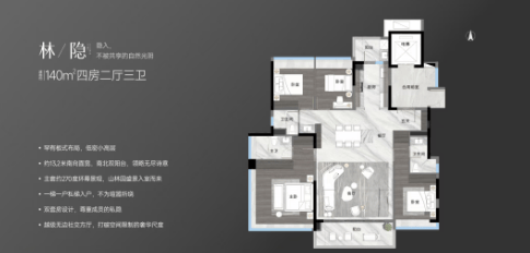 中轴园景建面约140㎡户型