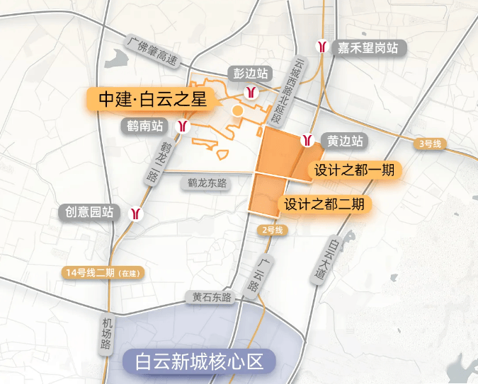 公共交通方面,项目堪称“地铁上盖级”配置。距离地铁2号线黄边站直线距离仅约800米,步行十来分钟就能抵达,日常通勤无需长时间奔波。从黄边站出发,3站即可直达白云新城,享受成熟的商务、商业配套;1站换乘嘉禾望岗站,可无缝衔接地铁3号线、14号线,轻松直达广州南站、广州东站等重要交通枢纽,出差、旅行都十分便捷。更值得期待的是,在建的地铁14号线二期彭边站距项目仅300米左右,该线路已于2025年正式通车,通车后直达广州火车站将更加方便,进一步拓宽了出行半径。