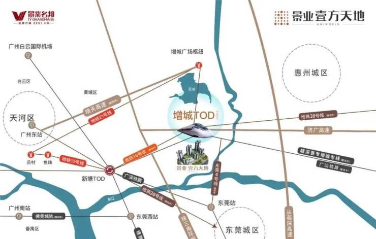 广州地铁16号线石滩站(规划中) 可快速联通增城TOD、新塘TOD, 快线4站到天河;通过东莞4号线(规划中) , 串联东莞城区。