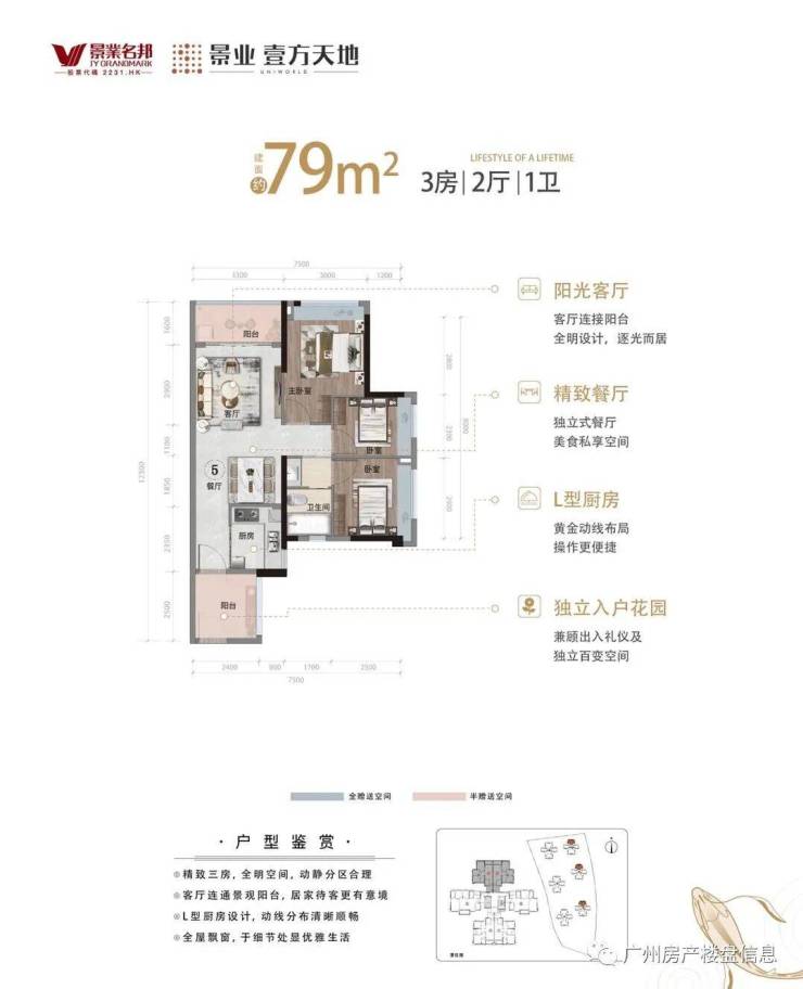 约 79 ㎡ 3 房+2 厅+1 卫+入户花园