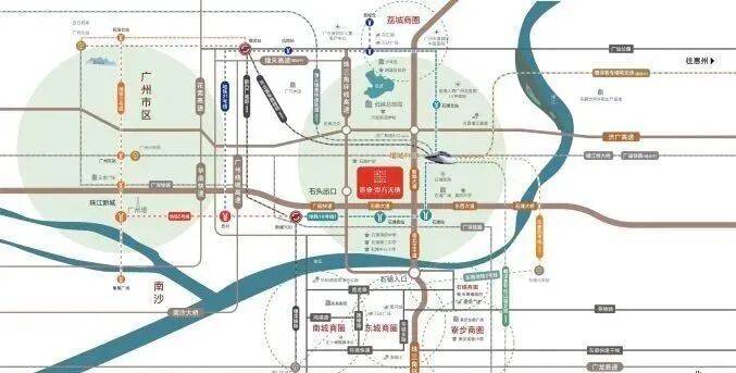 广州地铁 16 号线石滩地铁站(规划),可快速联通广州增城 TOD、新塘 TOD,快线 4 站到天河;通过东莞 4 号线(规划),串联东莞城区,快速联通穗莞双