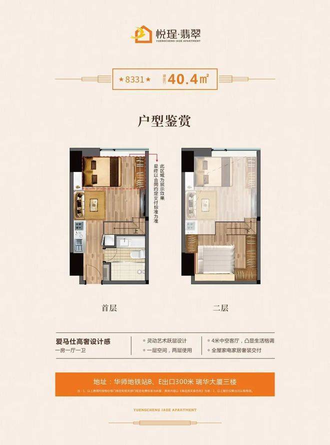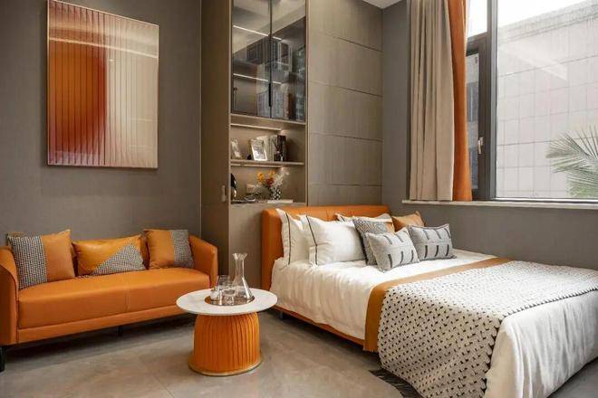 户型设计上,悦珵·翡翠走精装豪宅路线,整体风格偏向高奢轻奢融合。室内采用爱马仕橙作为点缀色,带来温暖又高级的视觉冲击;克莱恩蓝系列则营造出清新现代的新风尚;高级灰主调则突出低调优雅的轻奢质感。这些配色与材质搭配精心,空间利用率高,小户型也能做出大宅感,复式结构让层高和动线更灵活,居住体验舒适度拉满。