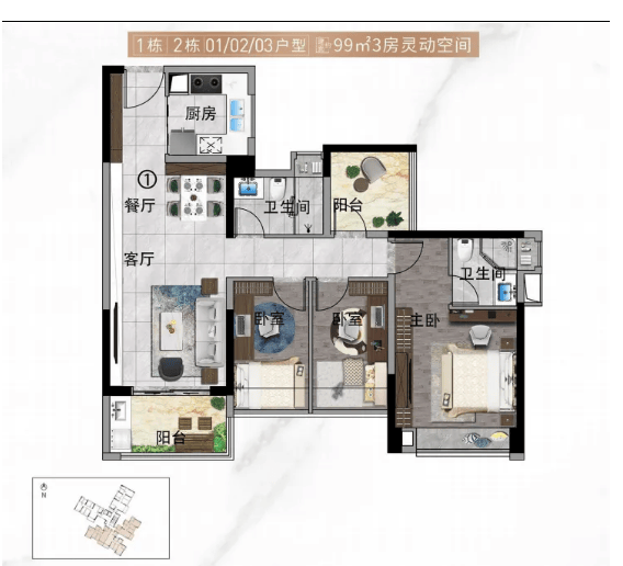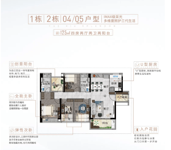 住宅仅 550 席稀缺供应,主力户型为 99㎡三房与 125㎡四房,全朝南设计搭配双阳台,采光通风极佳。99㎡竖厅格局动静分区,灵动空间可改儿童房或书房;125㎡带入户花园,主卧配独立衣帽间与飘窗,满足三孩家庭需求。另有 36-65㎡商办公寓,4.5 米层高带阳台,部分可明火。
