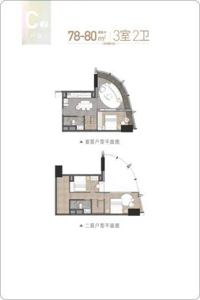 建面约80-88㎡舒适2+1房
