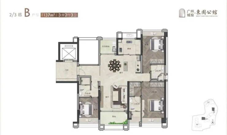 137㎡ 3房带双主套:该户型设计独特,拥有三个卧室,两个主卧均配备独立卫生间,适合追求高品质生活的家庭。南北对流的设计保证了室内空气流通,整体空间利用率高。