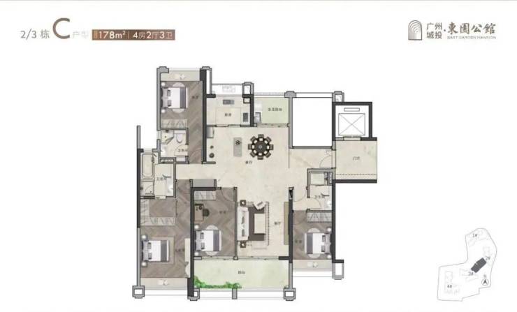178㎡ 4房带双主套:作为项目的顶级户型,178平方米的四房设计提供了极为宽敞的生活空间。每个房间都配备了充足的采光和通风条件,主卧带有超大衣帽间和独立卫生间,次卧也各自享有良好的私密性。