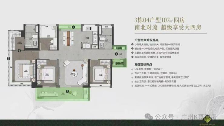 同样是南北对流的四房户型,做到了4.5开间朝南。