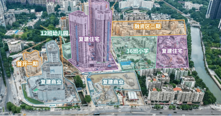 项目北临原黄埔区政府,直线距离约600米即可到达保利中央公馆、黄埔体育馆等成熟配套;东面则是万科城市之光,与惠润广场正对面的新溪旧改项目遥相呼应。华润置地·黄埔润府作为新溪旧改项目的核心组成部分,其规划方案一经公布便引发了市场的广泛关注。根据官方实施方案,项目改造范围总用地面积达14.64公顷,规划计容总建筑面积高达39.62万平方米。整个项目北至新安苑,南至黄埔东路,西至丰乐中路,东至乌涌,规模宏大,布局严谨。其中,复建区总用地10.09公顷,融资区总用地4.56公顷,一共规划了7个地块,包括2个复建地块、2个融资地块、2个商业地块以及1个学校地块。这种多元化的功能布局,不仅实现了居住、商业、教育、休闲的完美融合,更为未来的社区生活提供了无限可能。